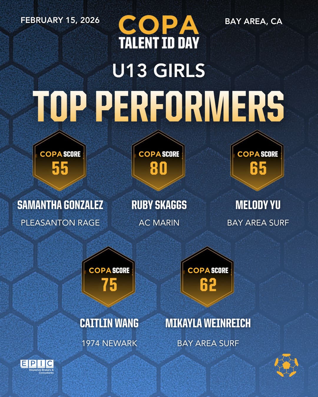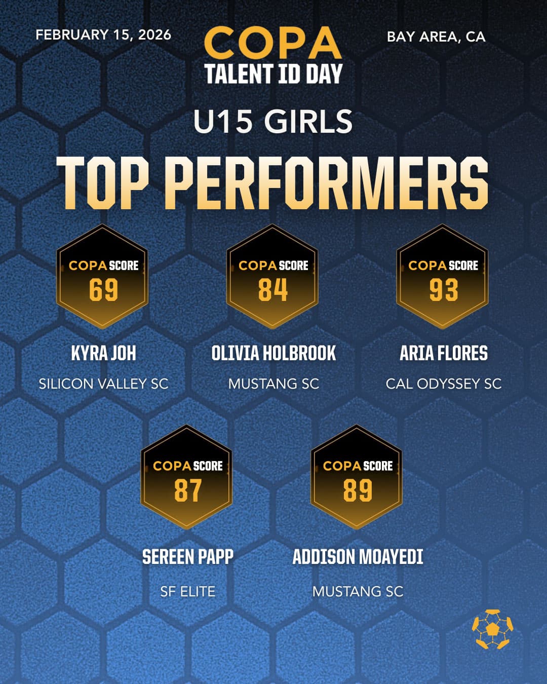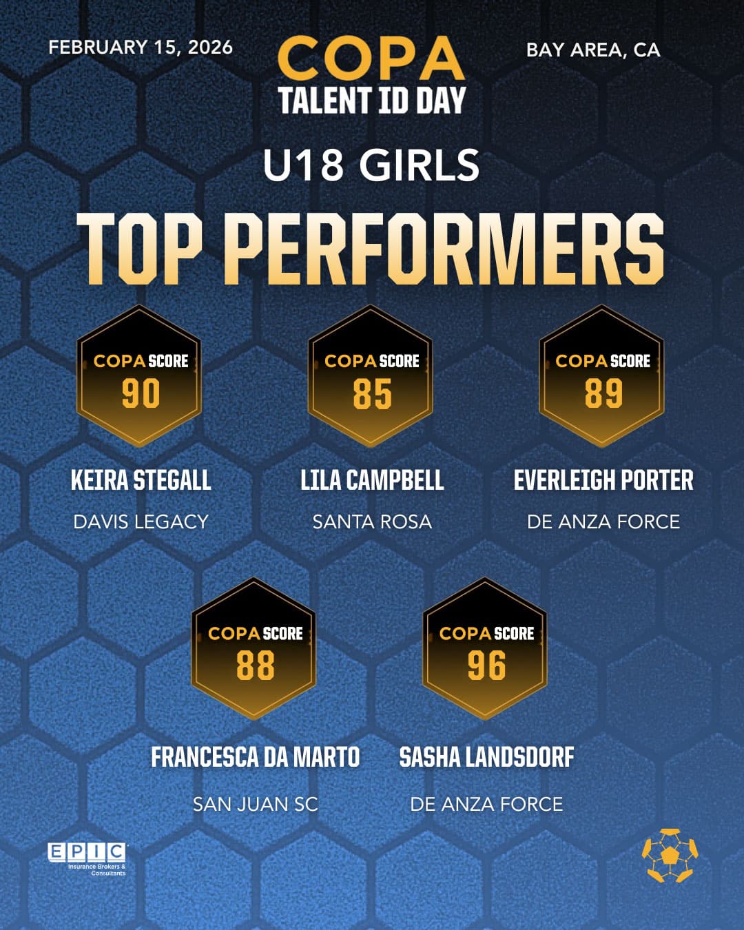 Talent is everywhere. But none more so than in Northern California right now. The COPA Score was taken by more 800 eligible female players since July 2025, and unlocked this opportunity for more than 100 players to impress. They also showcased where the level of play has got to in the girls game. The COPA Talent ID Day brought talented players, objective data and scouts from US Youth National Teams, regional talent programs and top NCAA schools together.