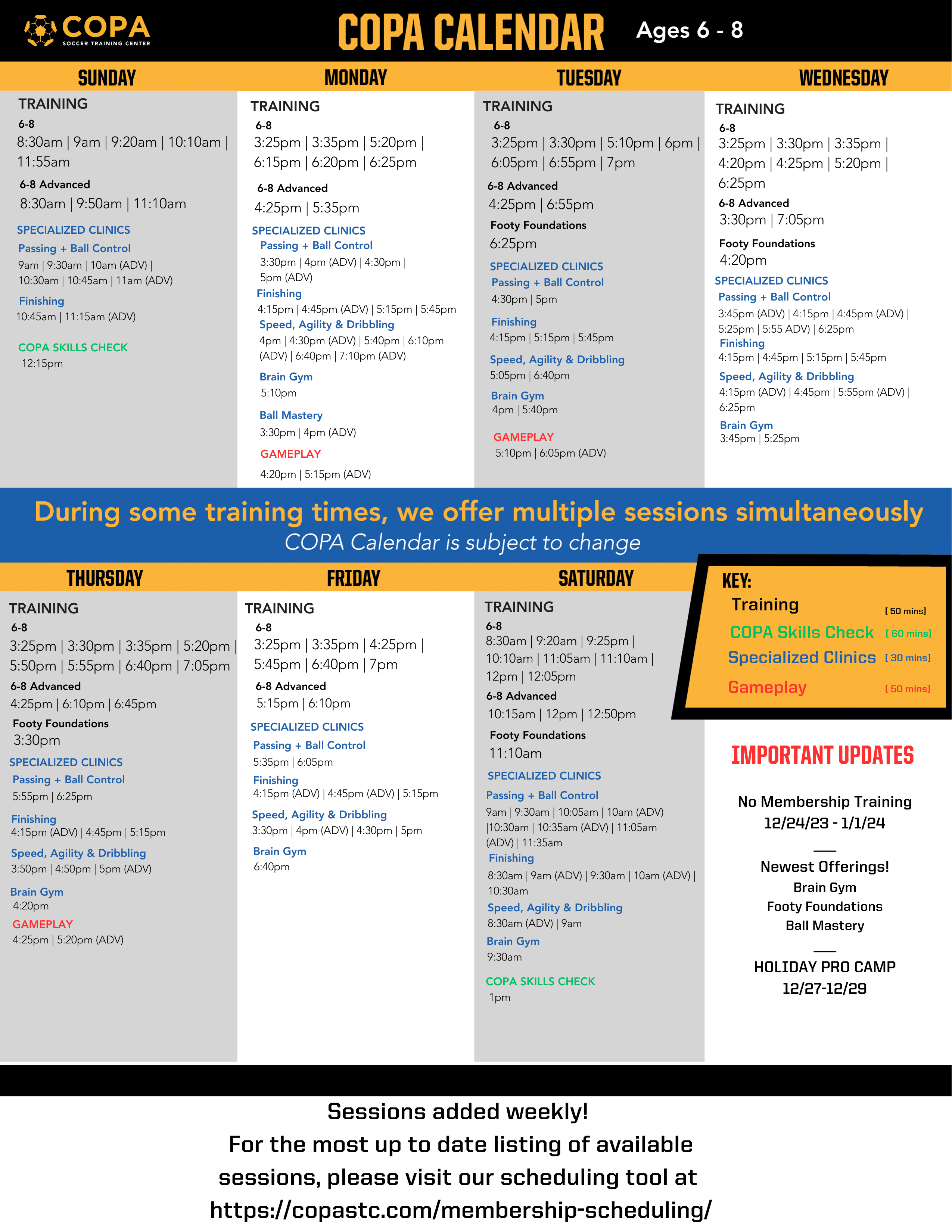 Here are some tips and tricks we’ve learned to help you manage and get the most out of your athlete’s schedule at COPA STC. These are our recommendations to make scheduling as smooth and efficient as possible.
